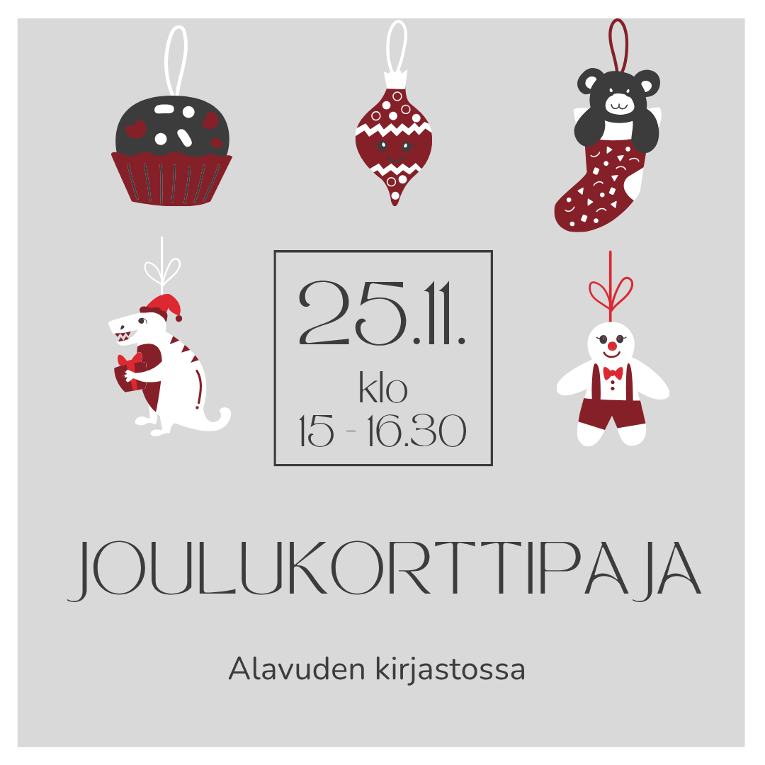 Tervetuloa Alavuden kirjastoon askartelemaan joulukortteja tiistaina 25.11. klo 15-16.30!