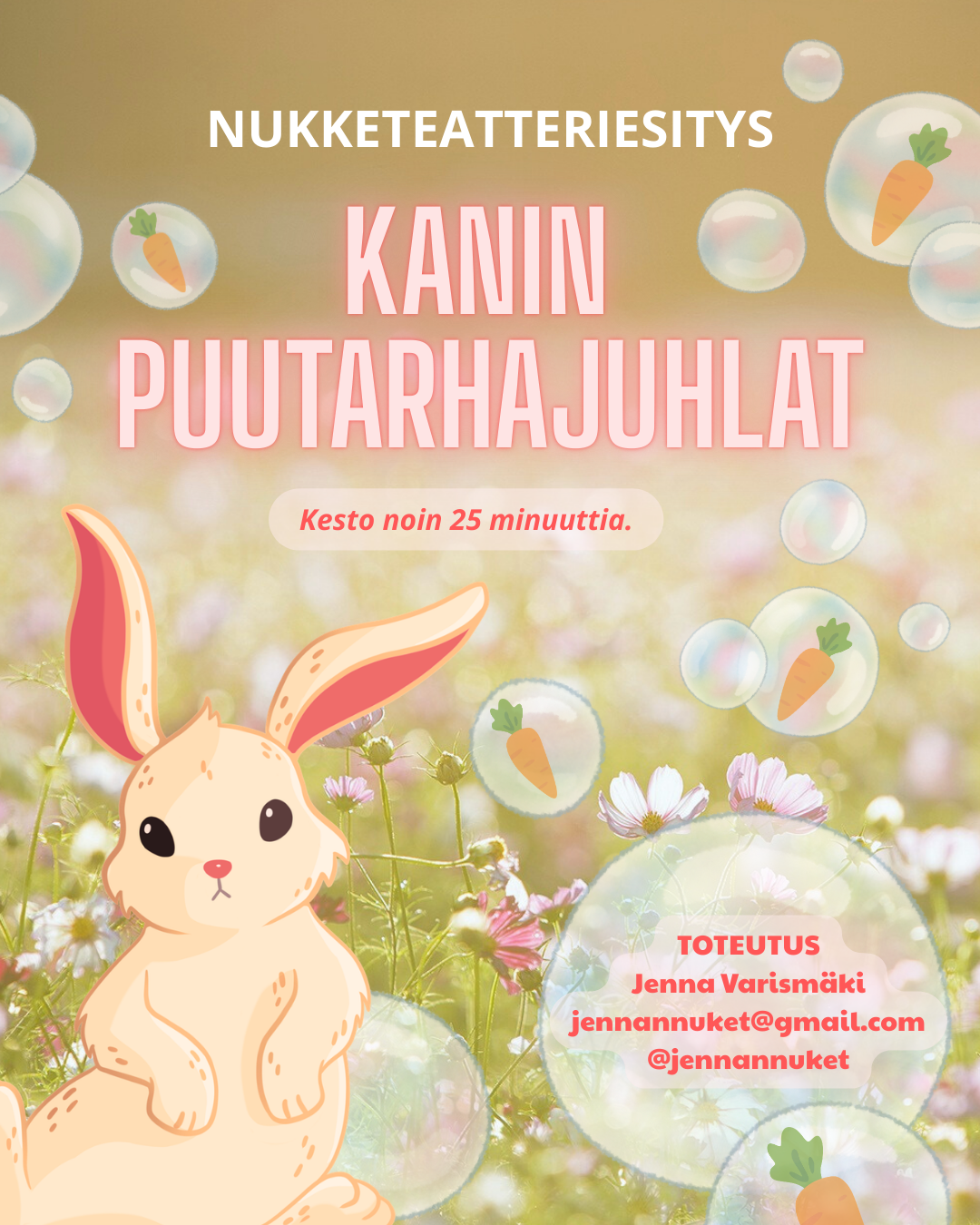 Alavuden kirjastossa to 23.4. klo 9.30 Jenna Varismäen nukketeatteriesitys Kanin puutarhajuhla
