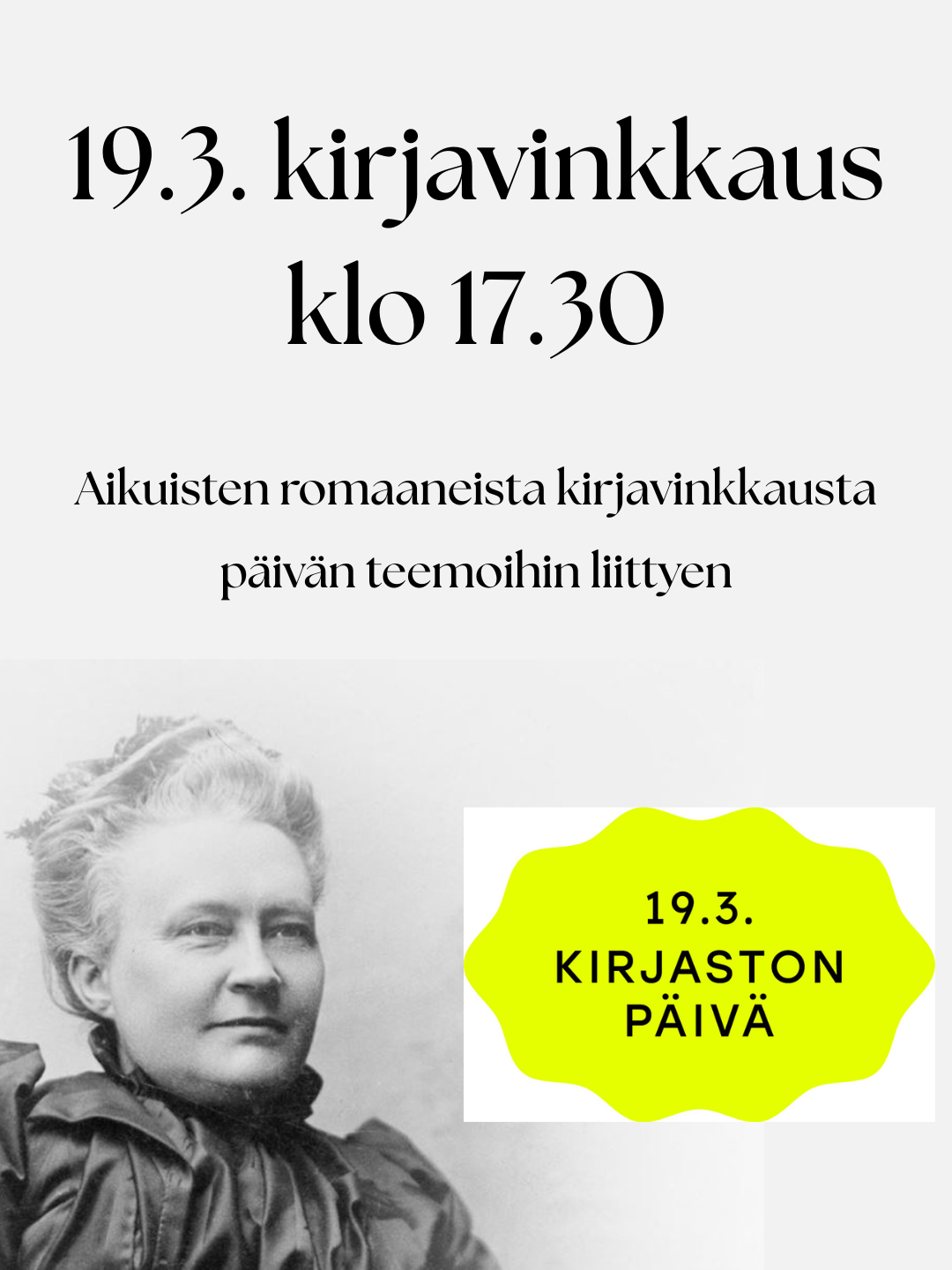 Minna Canthin ja tasa-arvon päivänä vietetään myös kirjaston päivää.