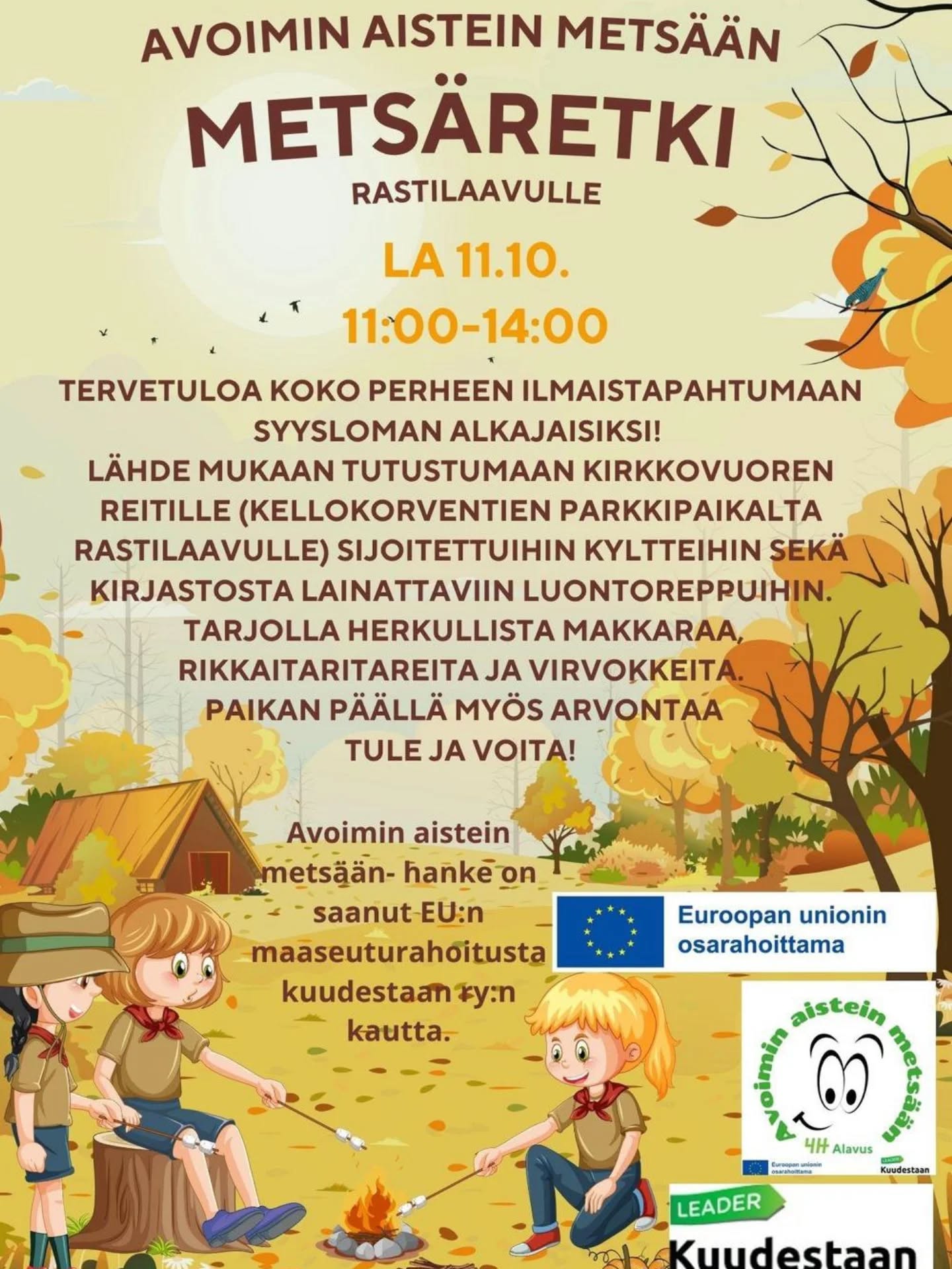 Avoimin aistein metsään -hanke on saanut EU:n maaseuturahoitusta Kuudestaan ry:n kautta.
