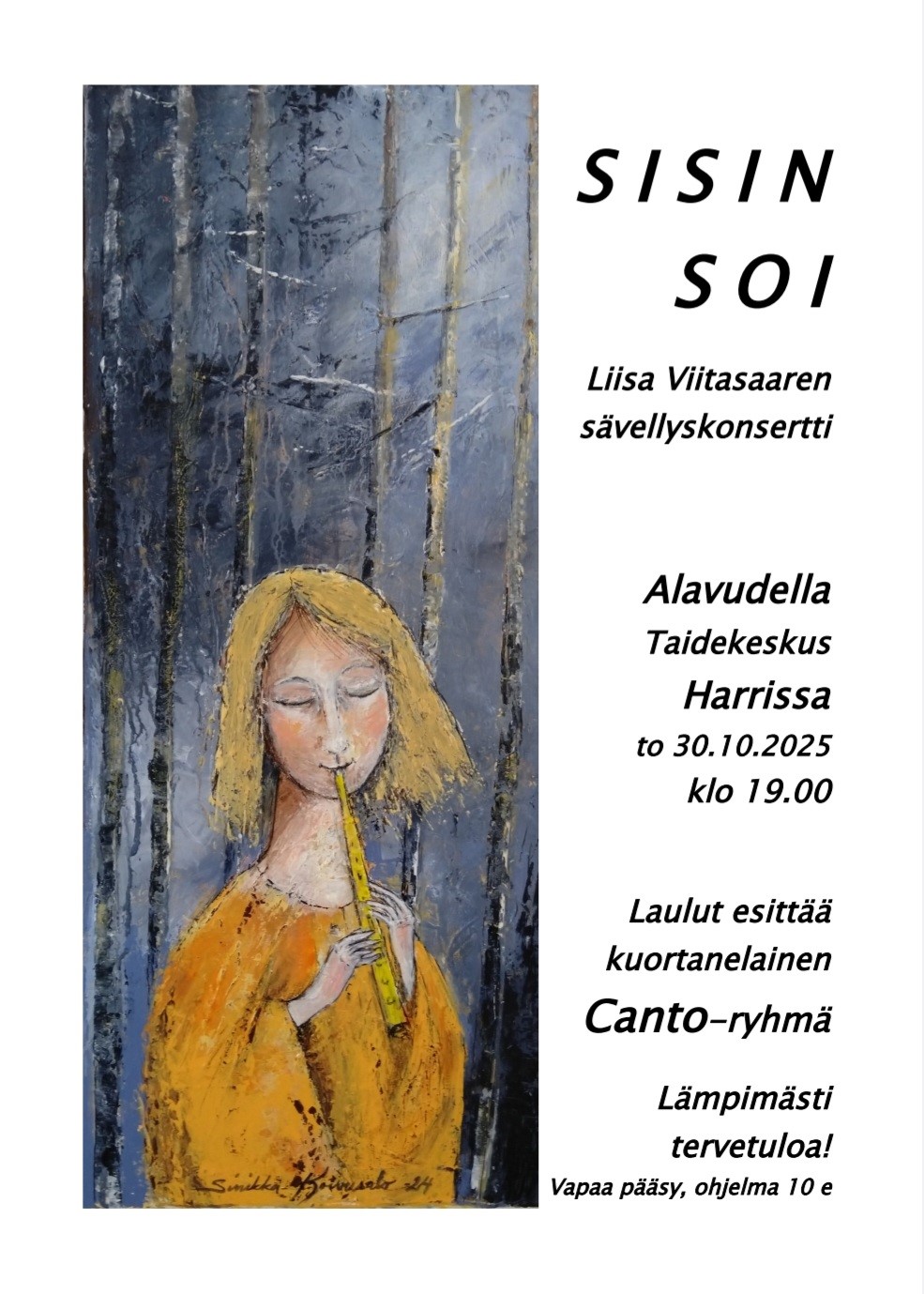 Sisin soi -konsertti to 30.10. Taidekeskus Harrissa klo 19